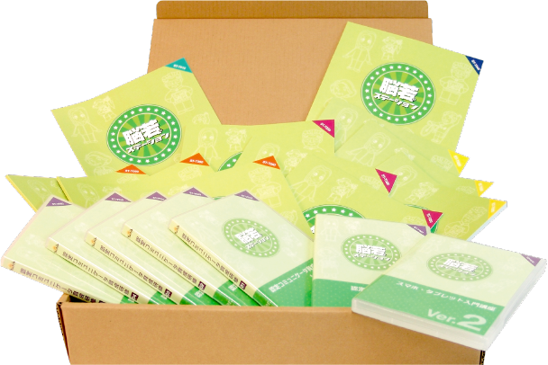 ご自宅でDVD&テキスト学習ができる『導入キット』、現場経験豊富な講師が教える集合研修『脳若アカデミー』、14種類・約700個の教材コンテンツが使い放題になるiPad専用アプリケーションソフト『脳若クラウド』。