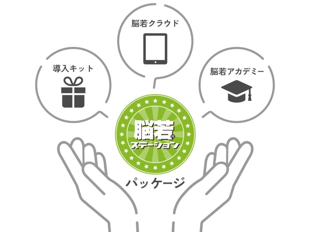 介護予防事業をはじめるのに必要なノウハウとシステムをひとつにまとめたものが『脳若ステーション』パッケージです。